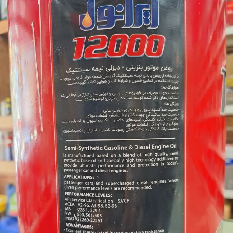 روغن موتور ایرانول 12000 چهارلیتری 10w40 سطح کیفی SJ/CF